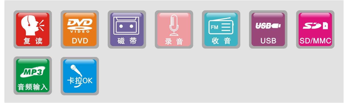1.DVD/USB/SD/MMC/磁帶復(fù)讀
