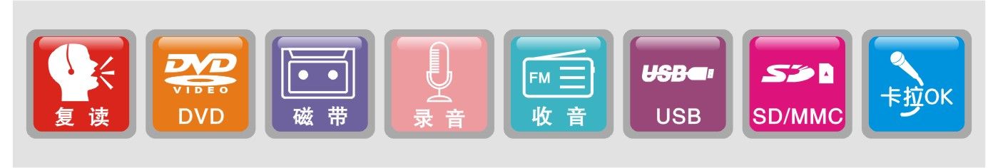 1)磁帶、USB、SD卡、DVD全能復(fù)讀(視頻同步復(fù)讀)