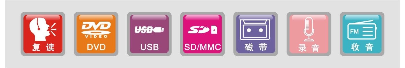 1)磁帶、USB、SD卡、DVD復(fù)讀