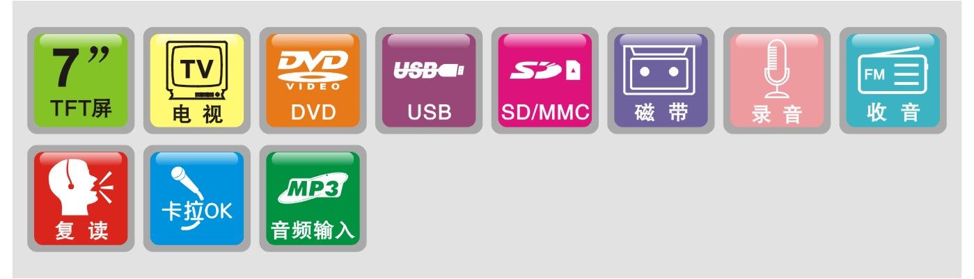 2)磁帶/DVD/USB/SD/MMC卡復讀